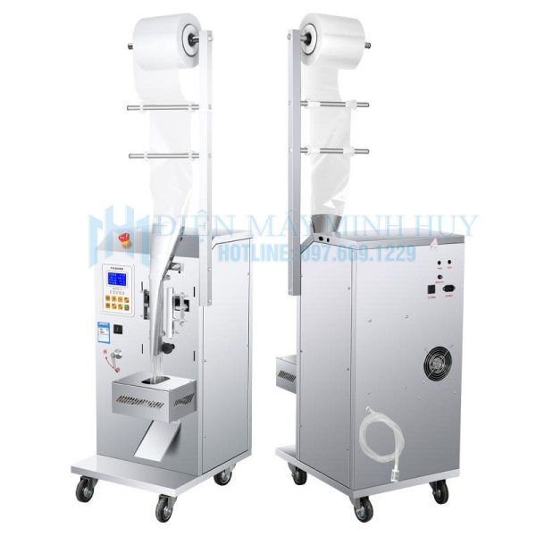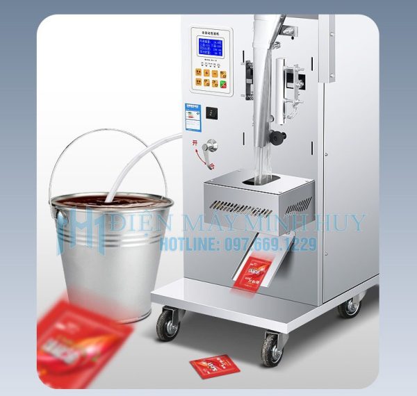 Máy đóng gói chiết rót hút trực tiếp 3 biên cạnh giữa (MHĐG-H08) là dòng máy đóng gói chiết rót chất lỏng thường dùng cho chất lỏng với kiểu ép 3 biên cạnh giữa (hay còn gọi là ép bụng/stick). Đây là thiết bị chuyên dụng để đóng gói các sản phẩm như nước mắm, nước, hoặc thực phẩm dạng lỏng không có cặn