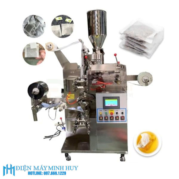 Máy đóng gói trà 2 lớp có tem chỉ (MHĐG-H04) là dòng máy cao cấp hơn so với máy đóng túi đơn. Điểm đặc trưng của dòng này là khả năng đóng gói đồng thời túi lọc bên trong (có gắn dây, tem) và túi màng ngoài (thường là màng nhôm hoặc màng nhựa) để bảo quản hương vị trà tốt hơn.