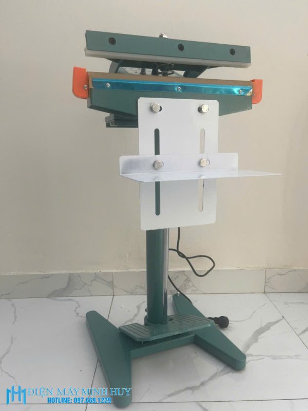 Máy hàn miệng túi dập chân PFS có giá đỡ (MHĐG-B04) là loại Máy hàn dập chân dây nhiệtlà dụng cụ sử dụng nhiệt độ làm nóng chảy mép túi nilon sau đó ép kín lại, nhằm để bảo quản hoặc đóng gói và vận chuyển thực phẩm, đồ dùng một cách dễ dàng, ngăn chặn không cho không khí và vi sinh vật xâm nhập vào làm hư hỏng thực phẩm.